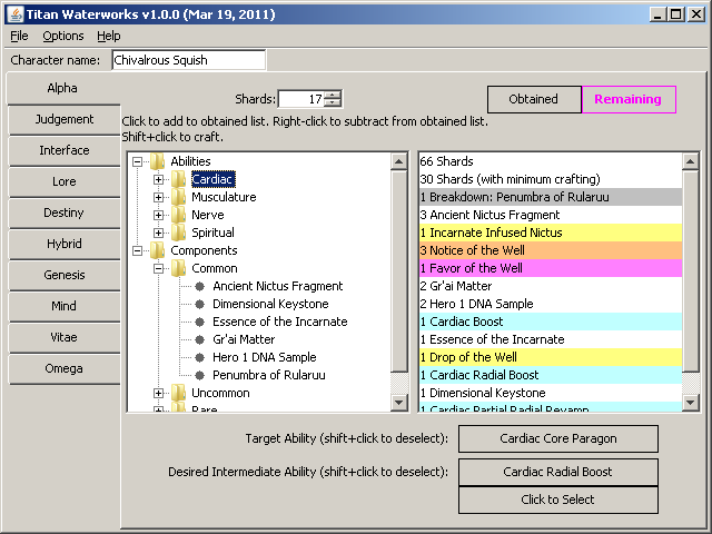 Titan Waterworks is Titan Network's utility to help make crafting your Incarnate Abilities simpler.
